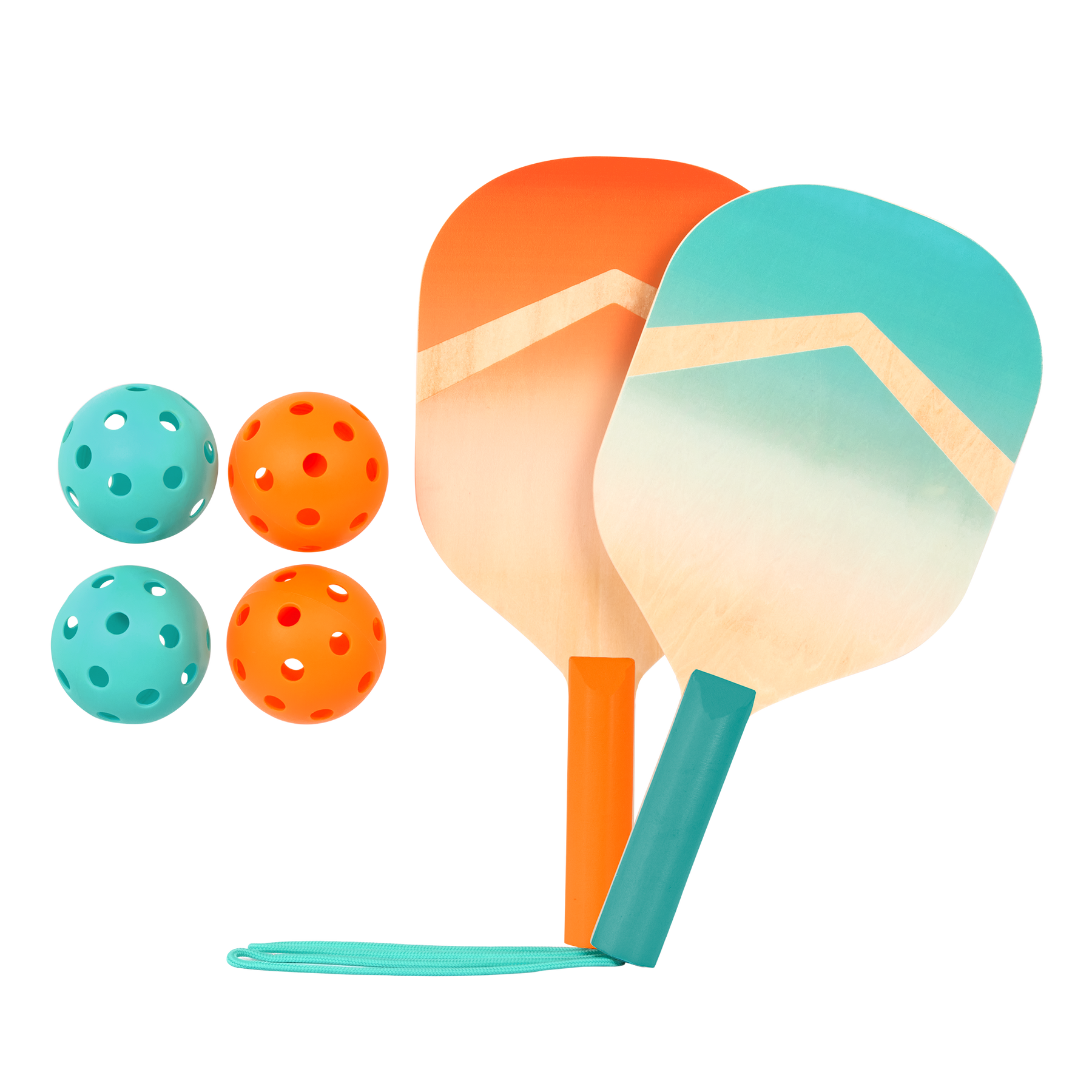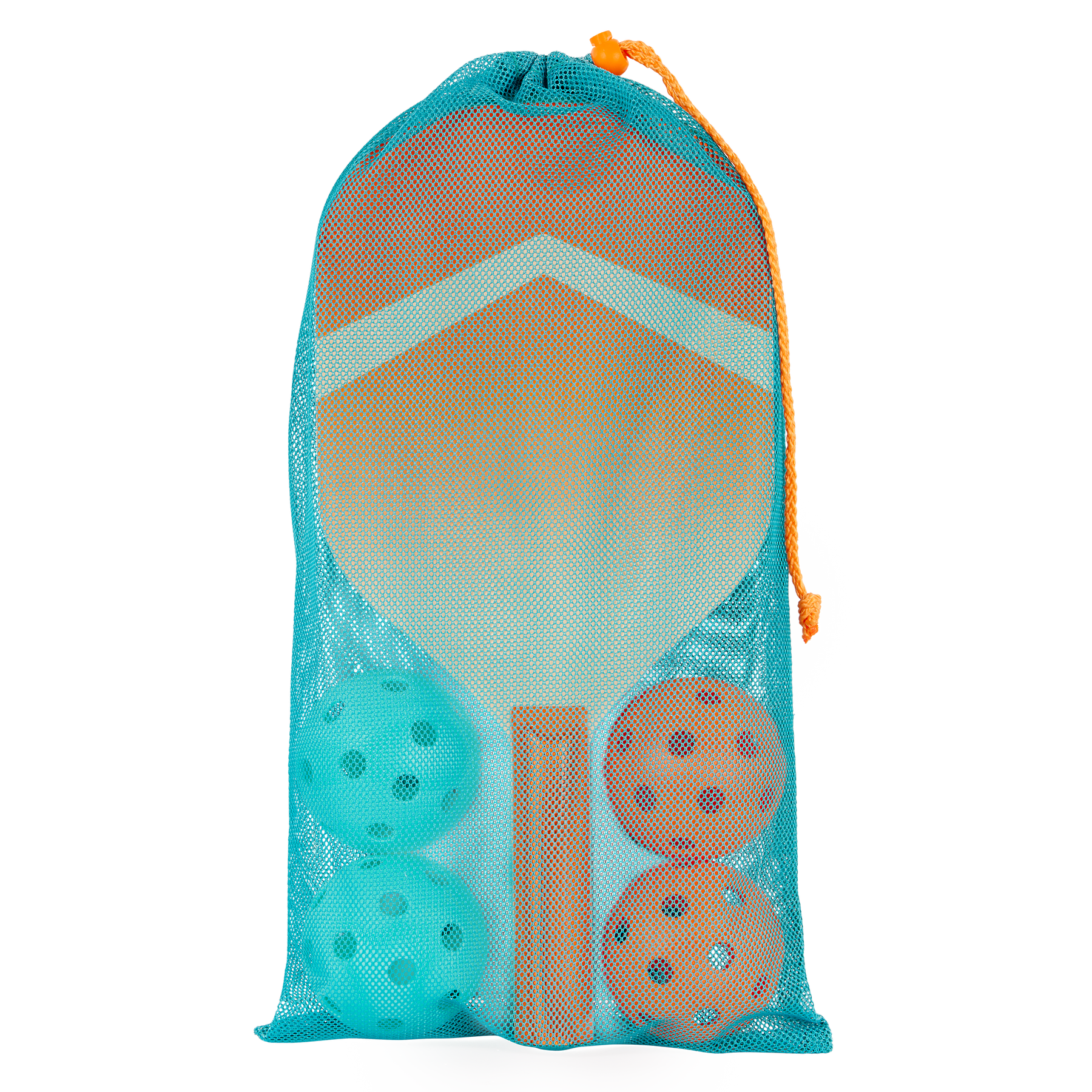 Servez une volée de plaisir avec le set de pickleball de B. sports ! Idéal pour tous les niveaux et accessible aux jeunes comme aux moins jeunes, le pickleball est le sport qui connaît la croissance la plus rapide au monde. Les enfants peuvent jouer toute la journée avec ce set complet comprenant 2 pagaies colorées et 4 balles de pickleball en bleu et orange. Faire du sport fait bouger les enfants, les aide à apprendre la coopération et à améliorer la coordination de l'ensemble du corps - et c'est aussi très amusant ! Une fois le jeu terminé, les parents apprécieront le fait que tout se range facilement dans le sac à cordon pour la prochaine fois. Recommandé pour les enfants de 3 ans et plus.
