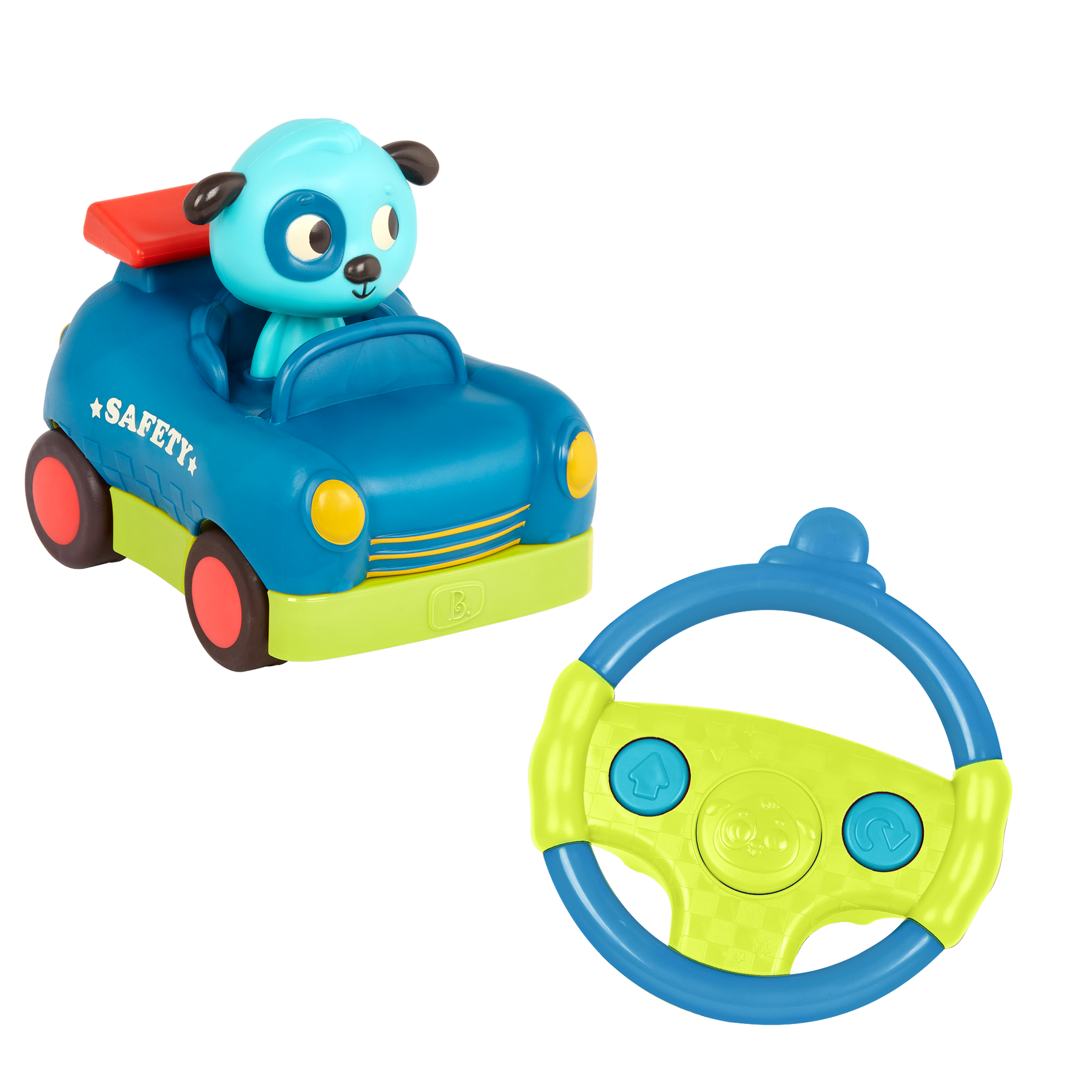 Vroum et zoom dans toute la pièce avec Woofer et sa voiture de course ! Ce jeu coloré est livré avec une manette facile à utiliser et une voiture télécommandée qui émet des sons amusants. À l'aide de la télécommande, les enfants peuvent facilement faire avancer Woofer, le faire reculer ou lui faire faire un virage à 360 degrés - la télécommande contrôle la voiture jusqu'à une distance de 80 pieds ! Ce jouet roule doucement sur le sol et émet des sons amusants - les enfants n'ont qu'à appuyer sur la tête de Woofer pour les entendre ! Toutes les pièces sont faciles à tenir pour les petites mains et jouer avec cette voiture RC peut améliorer la motricité fine et la coordination œil-main. De plus, Woofer a d'autres amis qui adorent faire la course ! Collectionnez tous les Riding Racers et faites la fête ! Nécessite 2 piles AAA pour la télécommande et 4 piles AA pour la voiture (non incluses). Recommandé pour les enfants de 2 ans et plus.
